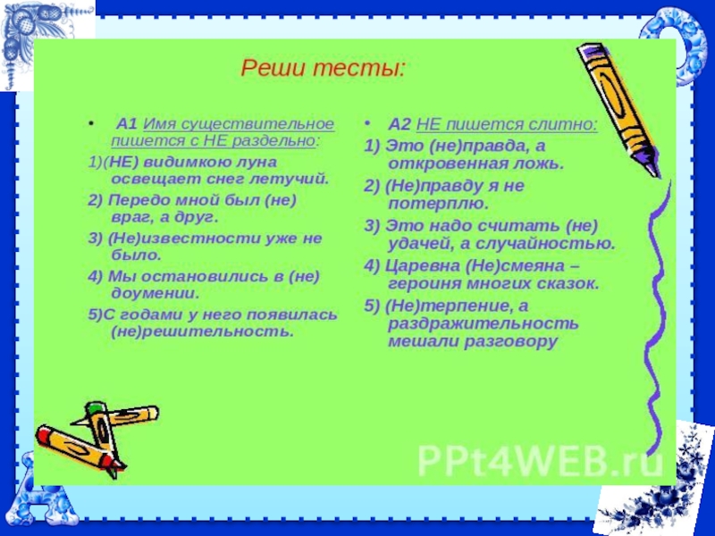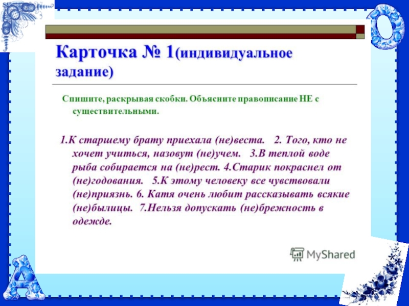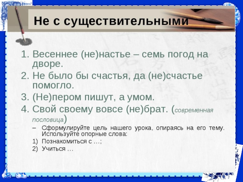 Презентация по русскому языку на тему Не с существительными (6 класс) Русский язык