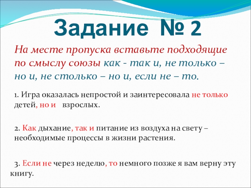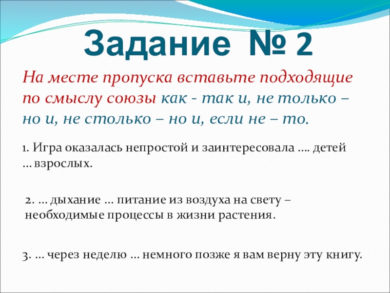 Задание № 2На месте пропуска вставьте подходящие по смыслу союзы как - так и, не только –