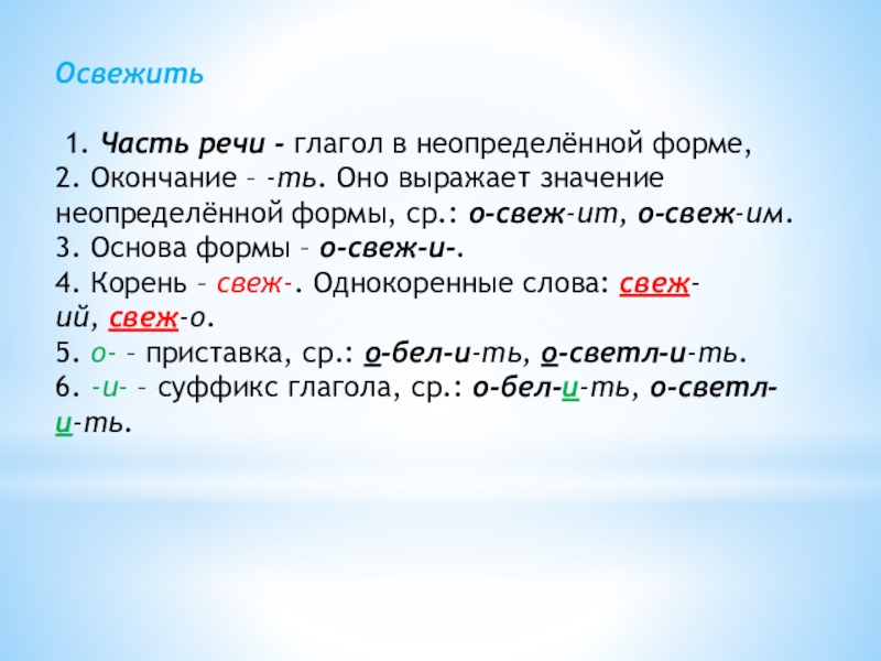6. -и- – суффикс глагола, ср.: о-бел-и-ть, о-светл-и-ть.