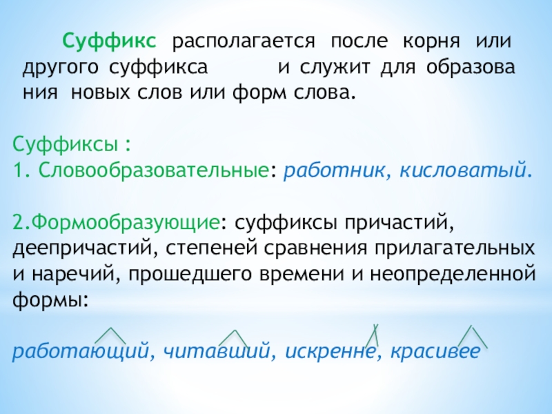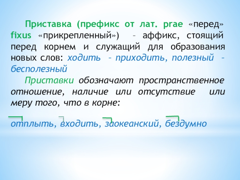 не употребляется самостоятельно и всегда прикрепляется к тому или другому корню.