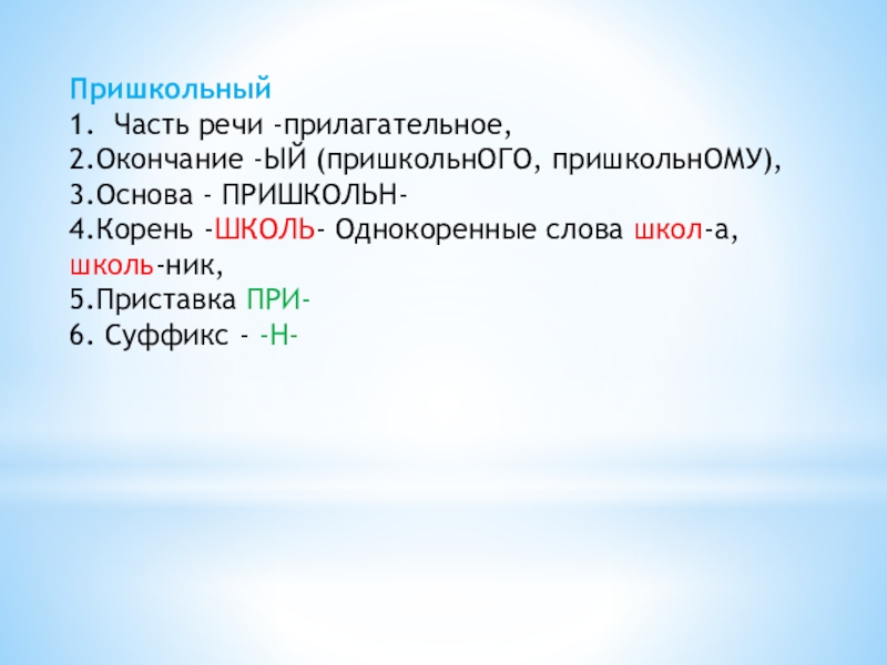2.Окончание -ЫЙ (пришкольнОГО, пришкольнОМУ),