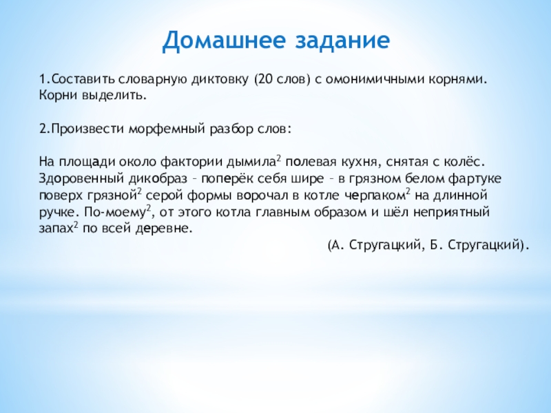 1.Составить словарную диктовку (20 слов) с омонимичными корнями. Корни выделить.