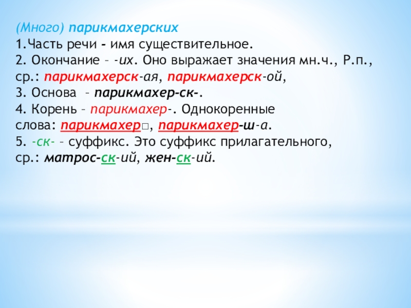 Р.п., ср.: парикмахерск-ая, парикмахерск-ой,