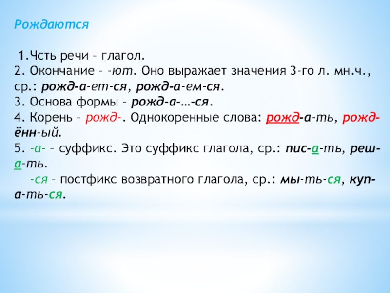 л. мн.ч., ср.: рожд-а-ет-ся, рожд-а-ем-ся.
