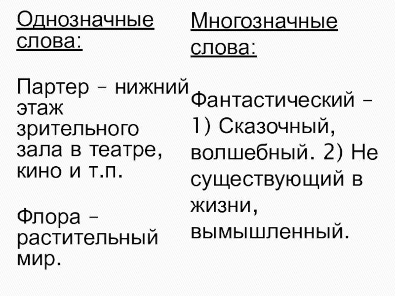Многозначные слова: