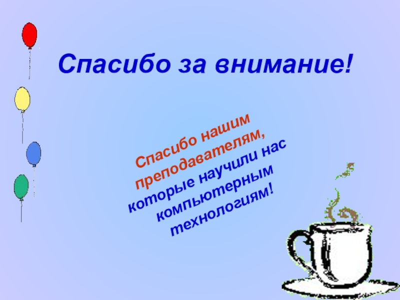 Это сайт презентаций, где можно хранить и обмениваться своими презентациями, докладами, проектами, шаблонами в формате PowerPoint с другими пользователями. Мы помогаем школьникам, студентам, учителям, преподавателям хранить и обмениваться учебными материалами.