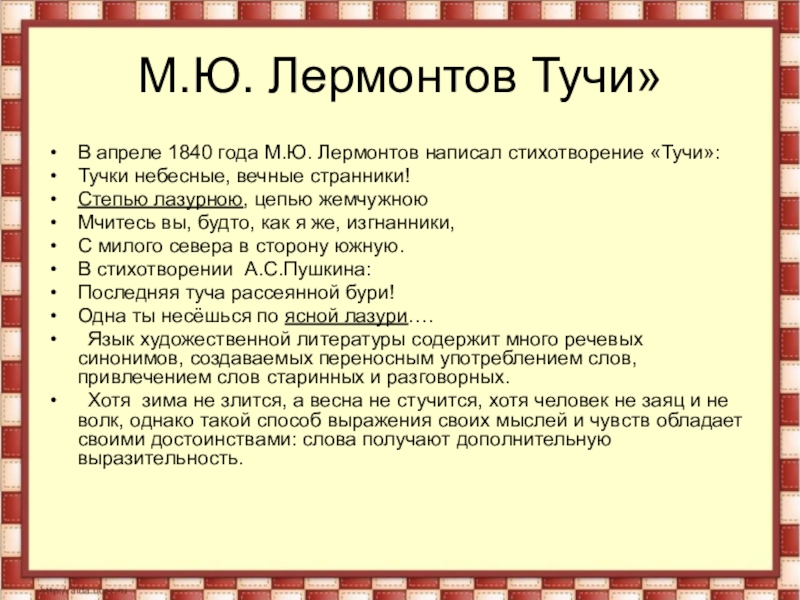 Слайд 14М.Ю. Лермонтов Тучи»