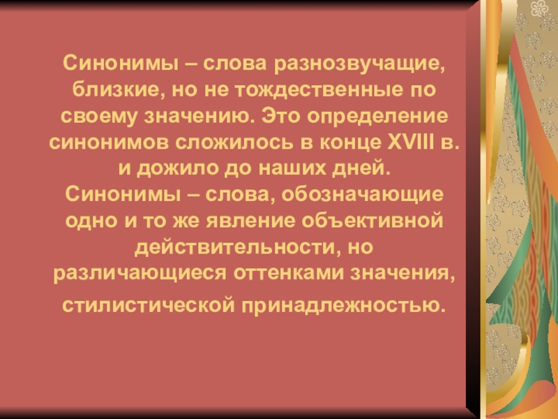 Это определение синонимов сложилось в конце XVIII в. и дожило до наших дней.
