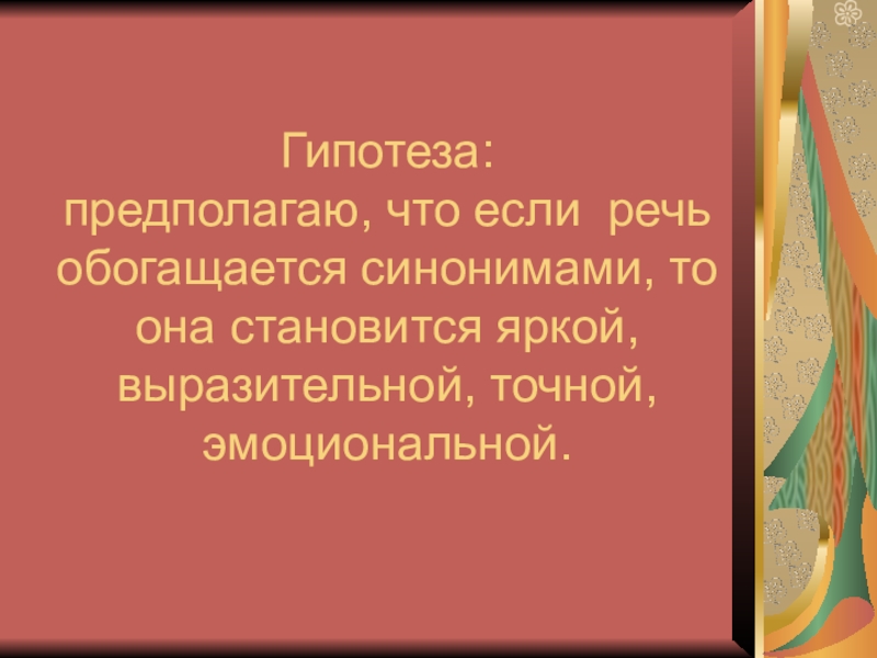 Если речь обогащается синонимами, то она становится яркой, выразительной, точной, эмоциональной.