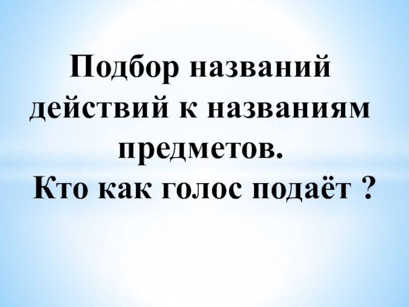 Слайд 1 Подбор названий действий к названиям предметов. Кто как голос подаёт ?