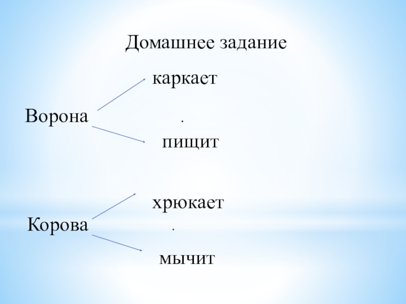 Домашнее заданиеВорона каркает пищит Корова хрюкает мычит ..
