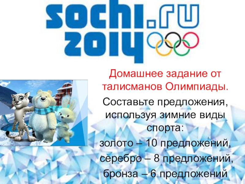Домашнее задание от талисманов Олимпиады.