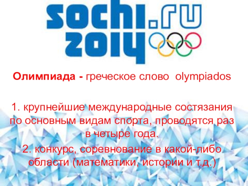 Олимпиада - греческое слово olympiados