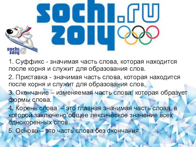 2. Приставка - значимая часть слова, которая находится после корня и служит для образования слов.