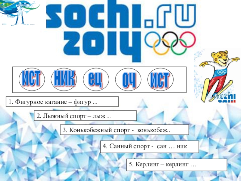 Составьте предложения, используя зимние виды спорта: