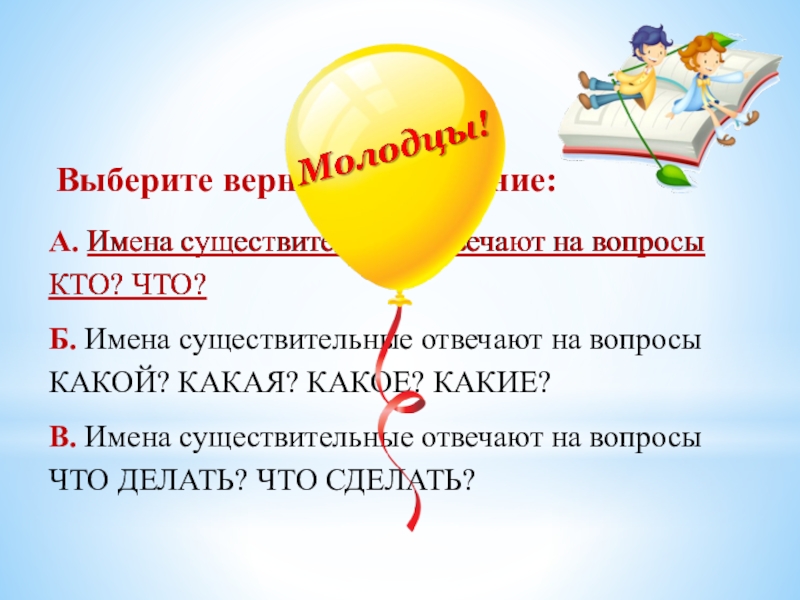 Имена существительные отвечают на вопросы КТО? ЧТО?