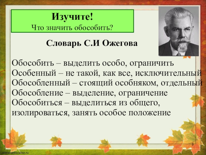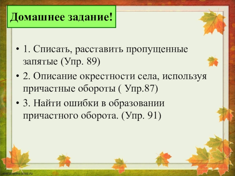 тип речи, стиль речи. Списать одно предложение с обособленным определением и одно предложение, в котором причастный оборот не выделяется запятой.