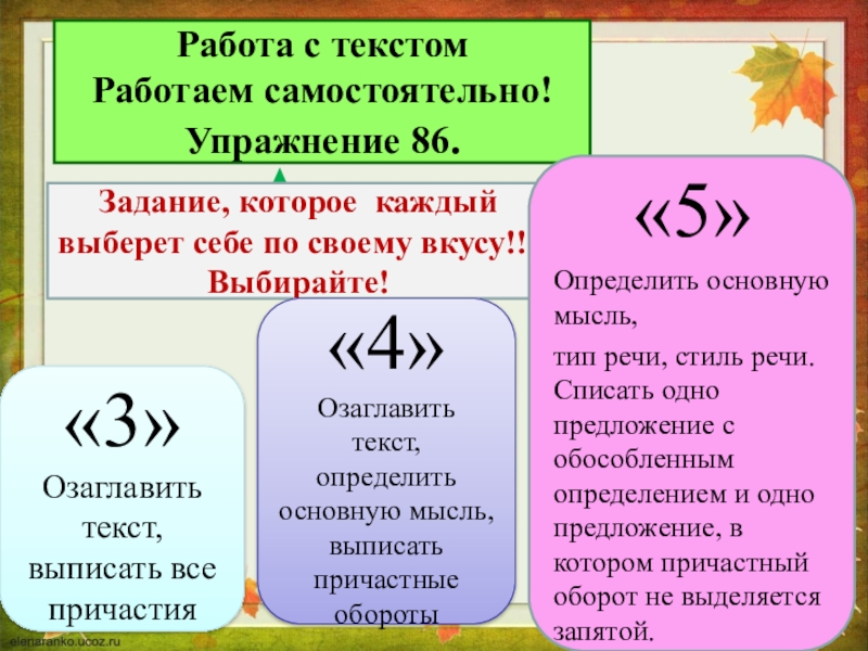 «4» Озаглавить текст, определить основную мысль, выписать причастные обороты