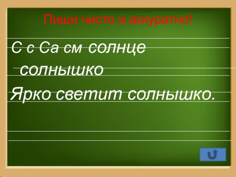 Пиши чисто и аккуратно!С с Са см солнце солнышкоЯрко светит солнышко.