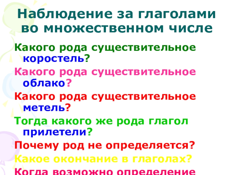 числе все глаголы имеют окончание - -и. Во множественном числе род глагола не определяется.