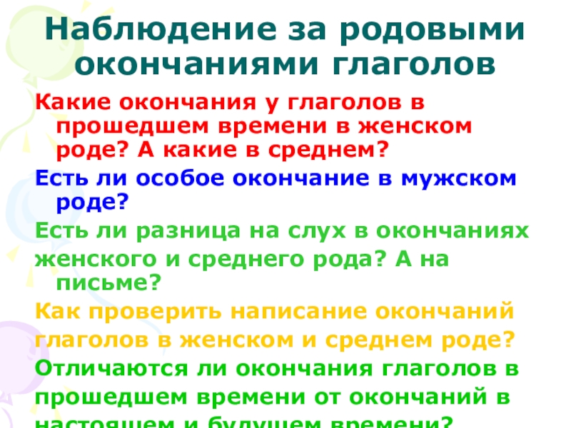 Слайд 11Наблюдение за родовыми окончаниями глаголов