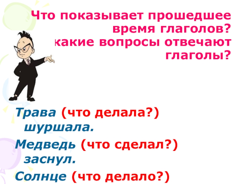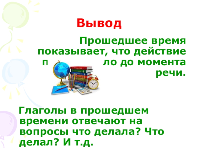 Слайд 7Что показывает прошедшее время глаголов?