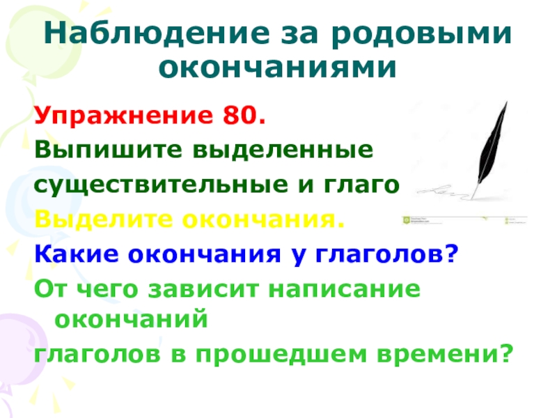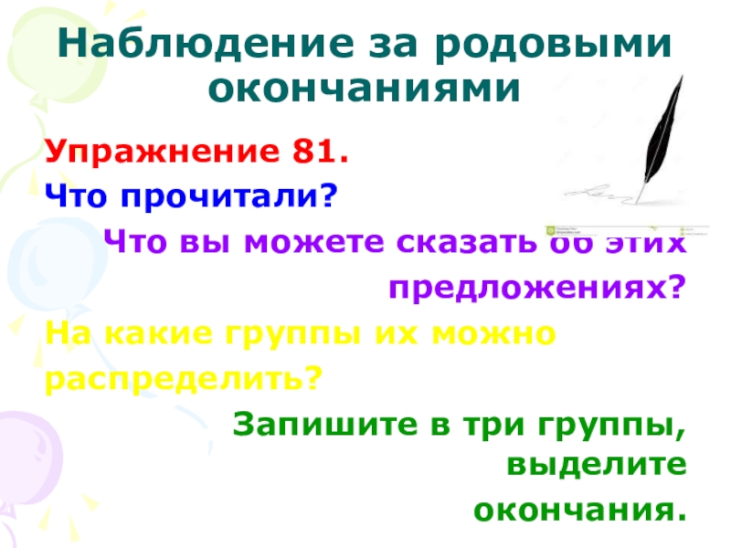 Слайд 10Наблюдение за родовыми окончаниями