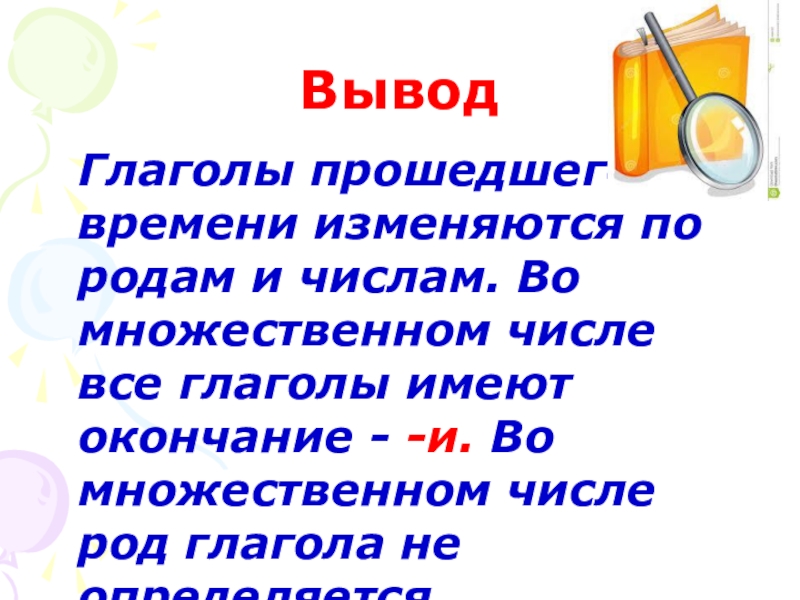 Глаголы прошедшего времени изменяются по родам и числам. Во множественном
