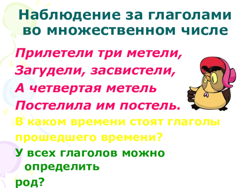 Слайд 16Наблюдение за глаголами во множественном числе