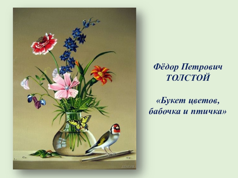 « Букет цветов, бабочка и птичка».