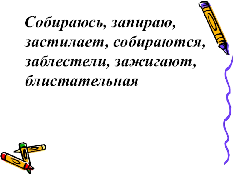 Собираюсь, запираю, застилает, собираются, заблестели, зажигают, блистательная