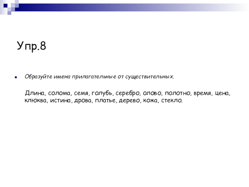 Образуйте имена прилагательные с суффиксами -ск-, -инск-, -еньк-.