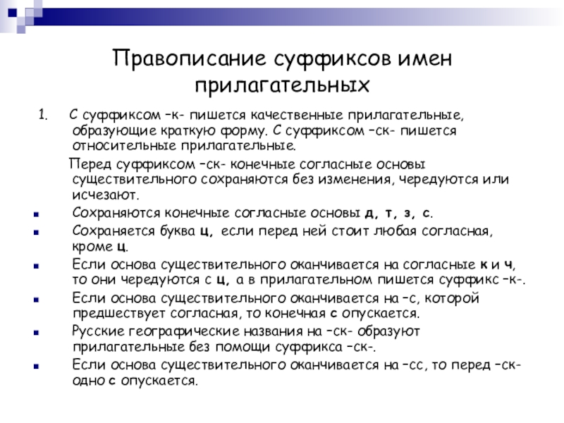 качественные прилагательные, образующие краткую форму. С суффиксом –ск- пишется относительные прилагательные.