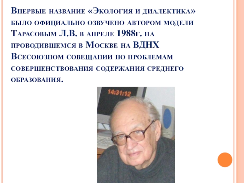 Слайд 2Впервые название «Экология и диалектика» было официально озвучено автором модели Тарасовым