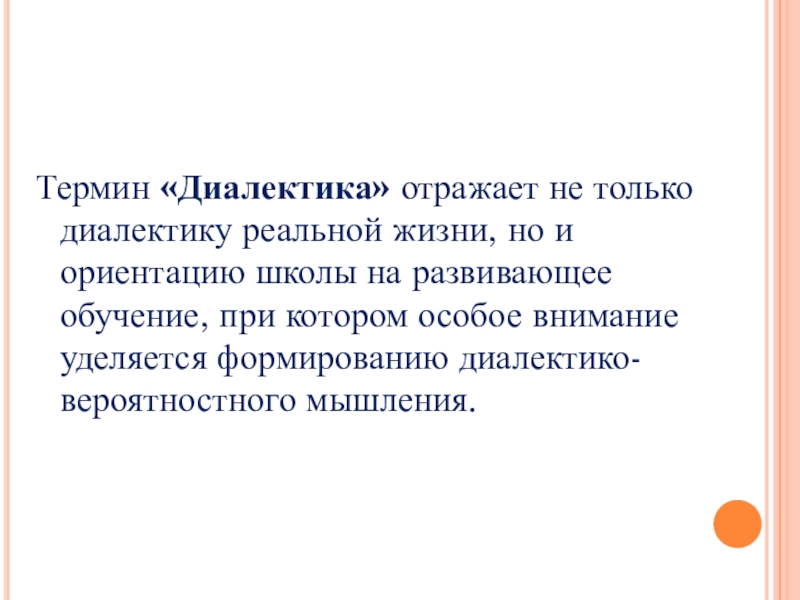 Слайд 6Термин «Диалектика» отражает не только диалектику реальной жизни, но и ориентацию школы на