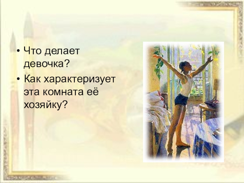 Что делает девочка?Как характеризует эта комната её хозяйку?