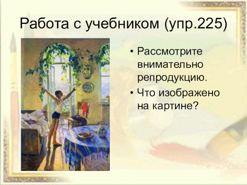 Работа с учебником (упр.225)Рассмотрите внимательно репродукцию.Что изображено на картине?