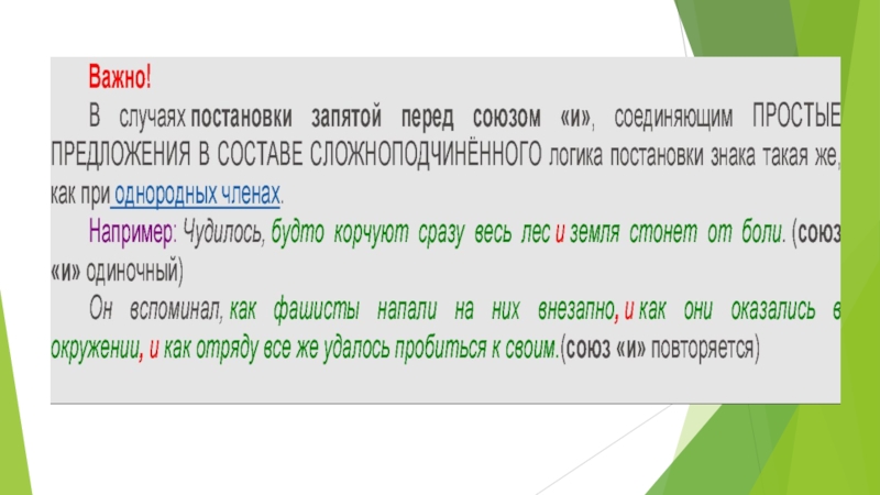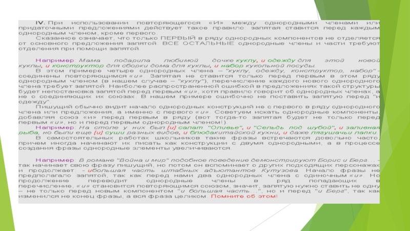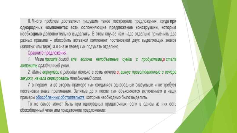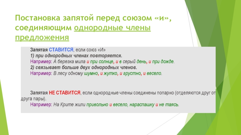 Слайд 3Постановка запятой перед союзом «и», соединяющим однородные члены предложения