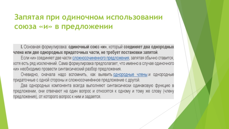 Слайд 6Запятая при одиночном использовании союза «и» в предложении