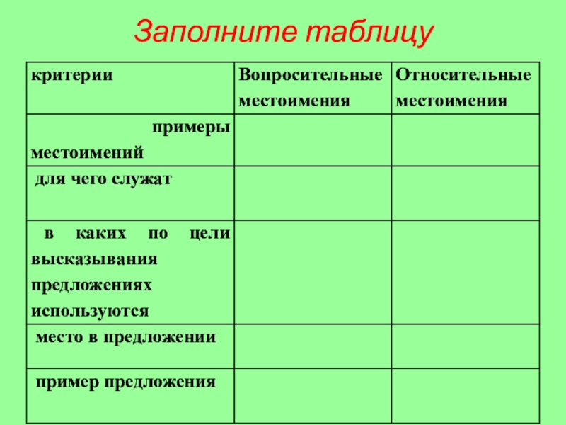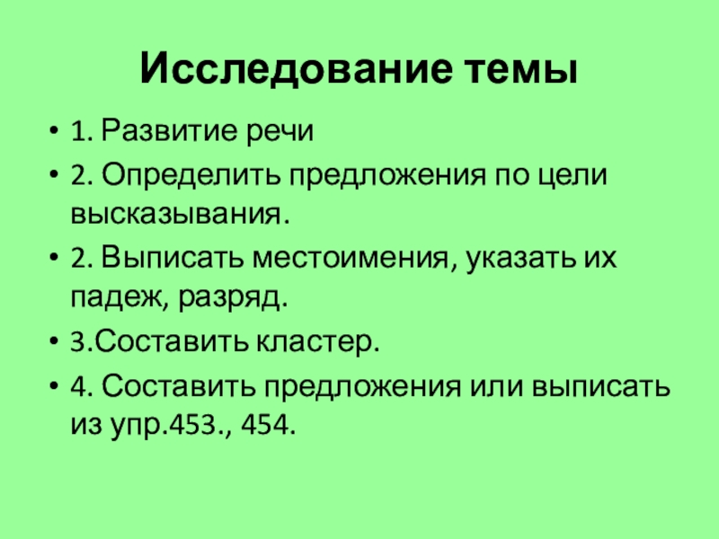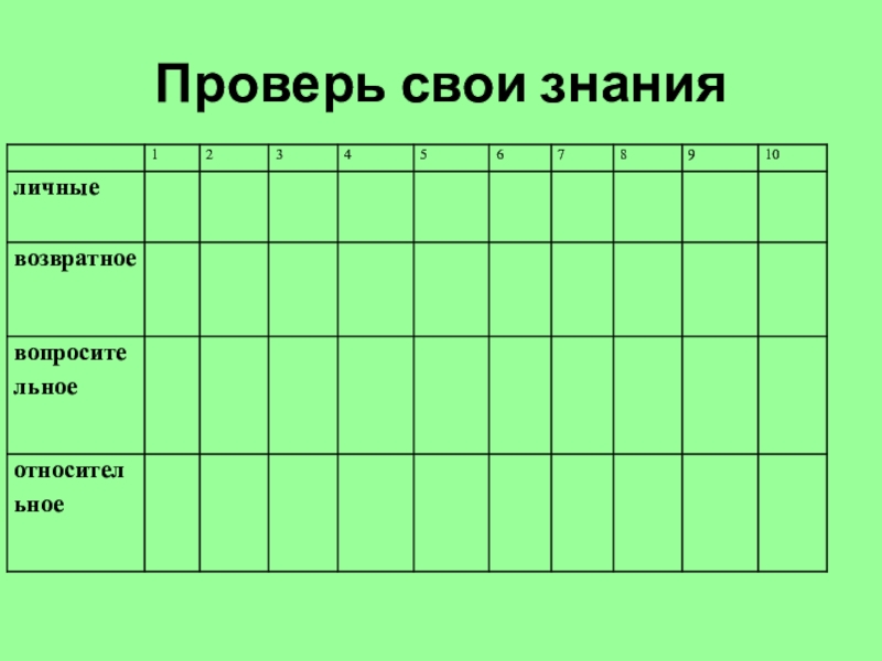 личные местоимения, возвратное местоимение, предложения по цели высказывания