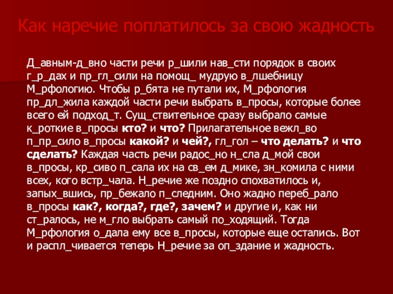 Как наречие поплатилось за свою жадность
