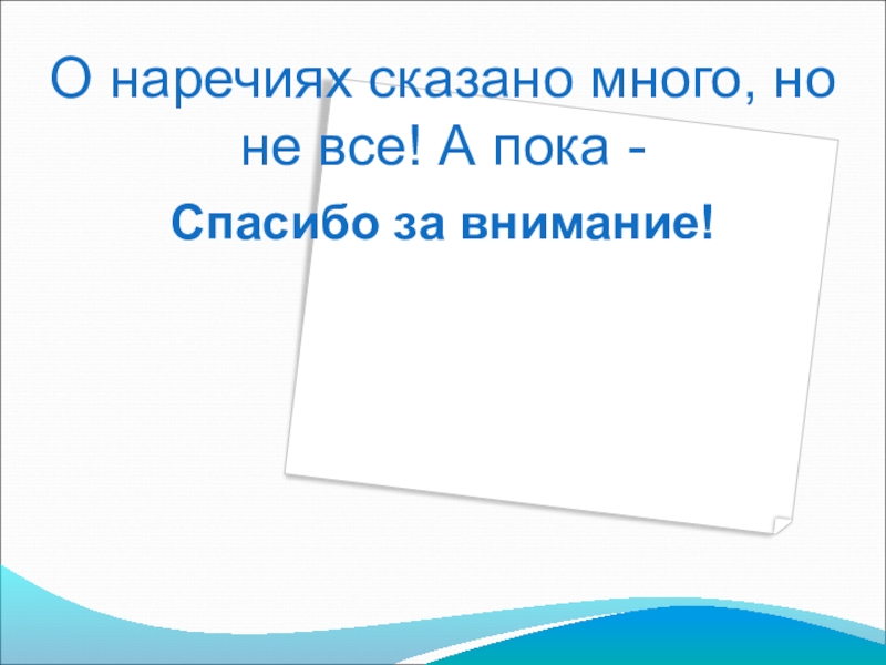 Слайд 39О наречиях сказано много, но не все! А пока -