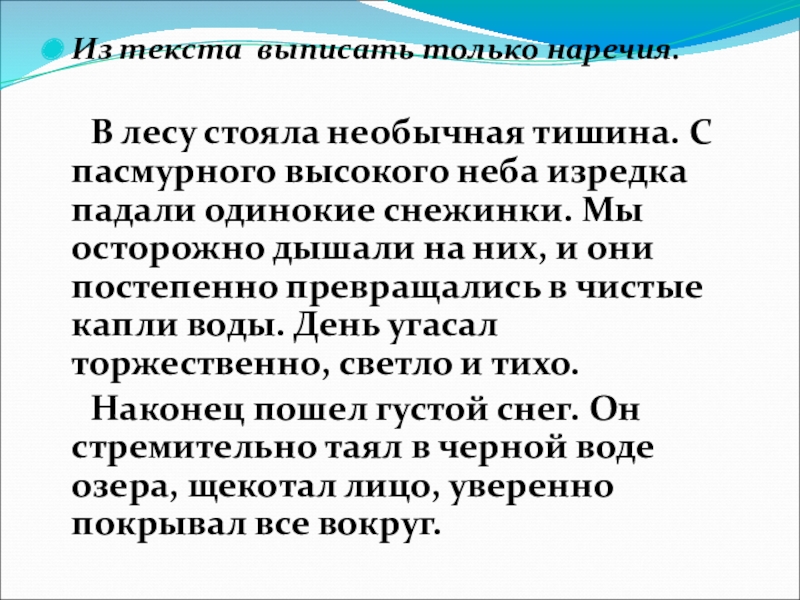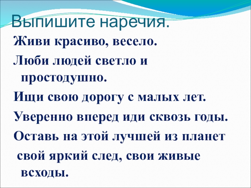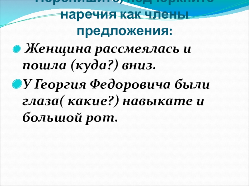Слайд 11Перепишите, подчеркните наречия как члены предложения: