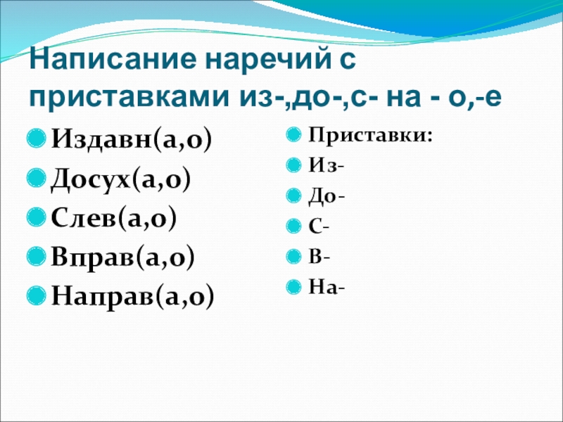 Слайд 37Написание наречий с приставками из-,до-,с- на - о,-е