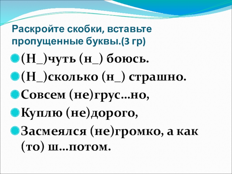 Слайд 35Раскройте скобки, вставьте пропущенные буквы.(3 гр)