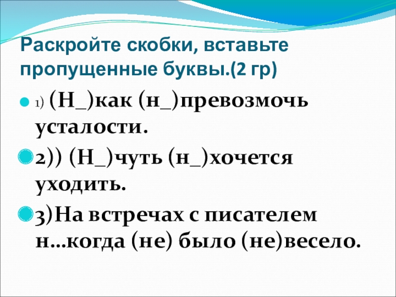 Слайд 34Раскройте скобки, вставьте пропущенные буквы.(2 гр)