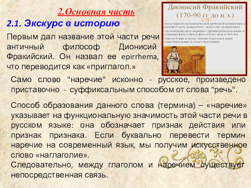 Наречие – очень интересная в историческом отношении часть речи. Язык