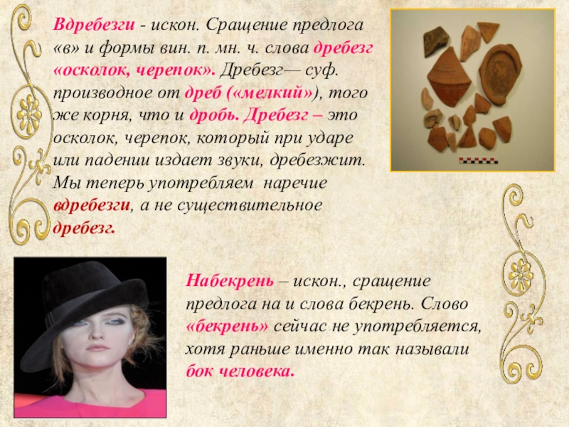 Слайд 13Вдребезги - искон. Сращение предлога «в» и формы вин. п. мн.