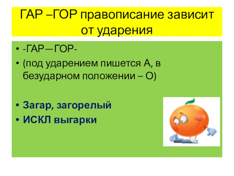 Слайд 10ГАР –ГОР правописание зависит от ударения