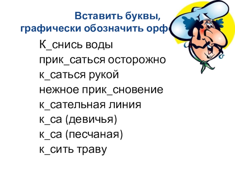 Слайд 11Найдите слово, в котором нужно вставить а.